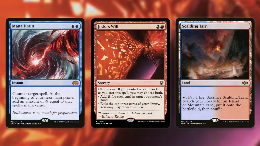 Unsurprisingly, the first place to look is the Game Changers list. Rhystic Study does an incredible job in the card advantage department, while Jeska’s Will sets you up nicely to cast some enormous spells and trigger Rootha well in advance. Force of Will is also a great addition to protect your Commander for free, even if Rootha only triggers during your turn. As a result, these three cards are well worth adding, but they all cost well over $40 due to consistent demand.