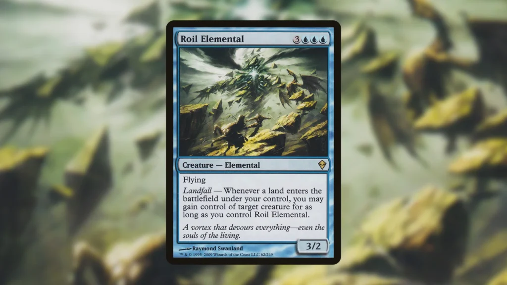 Roil Elemental is a nasty creature that will put a target on your back as soon as it enters play. This creature can quickly snatch up your opponent’s Commanders in a Landfall-focused strategy, but even in a big blue deck that just wants to cheat things into play, Roil Elemental can seriously impede your opponent’s progress. In late-game scenarios, this Elemental can even become a win condition.