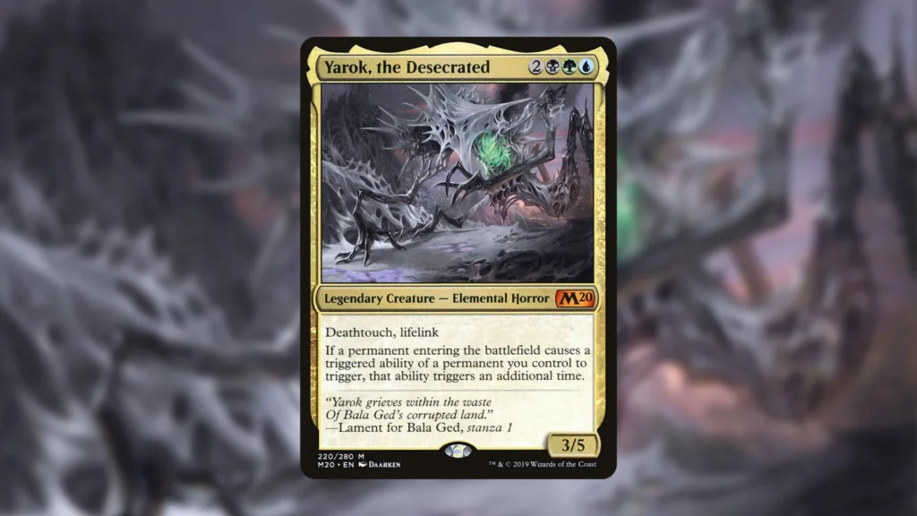 While Yarok, the Desecrated does synergize with the long list of ETB elementals, Yarok, the Desecrated is just a Panharmonicon on a stick. As you may imagine, this is a particularly powerful effect to have in the Command Zone, essentially doubling the value of every card you cast.