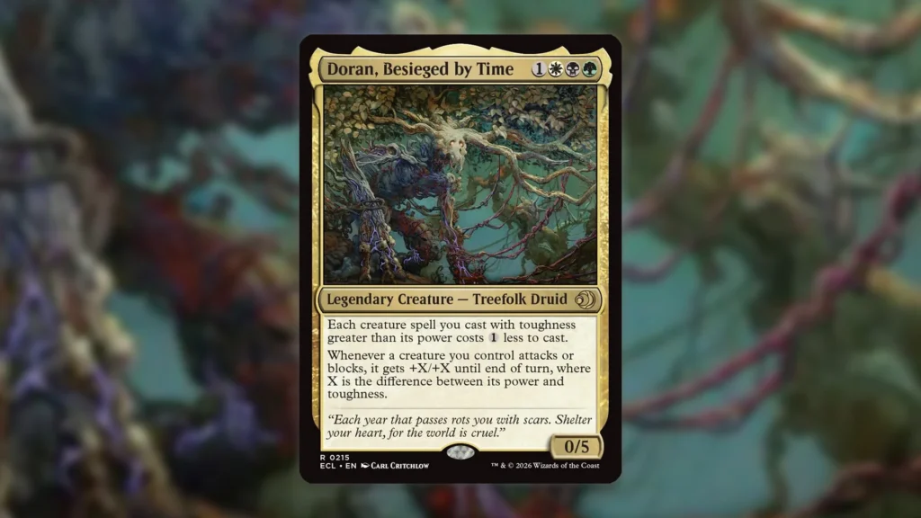Toughness Matters has long been a popular theme in EDH, and Doran, Besieged by Time is a fantastic new addition to the archetype. Right off the bat, the discount it provides to your other cards with big butts makes it much easier to cast multiple creatures on the same turn. It also makes getting to powerhouses like The Walls of Ba Sing Se much more realistic.