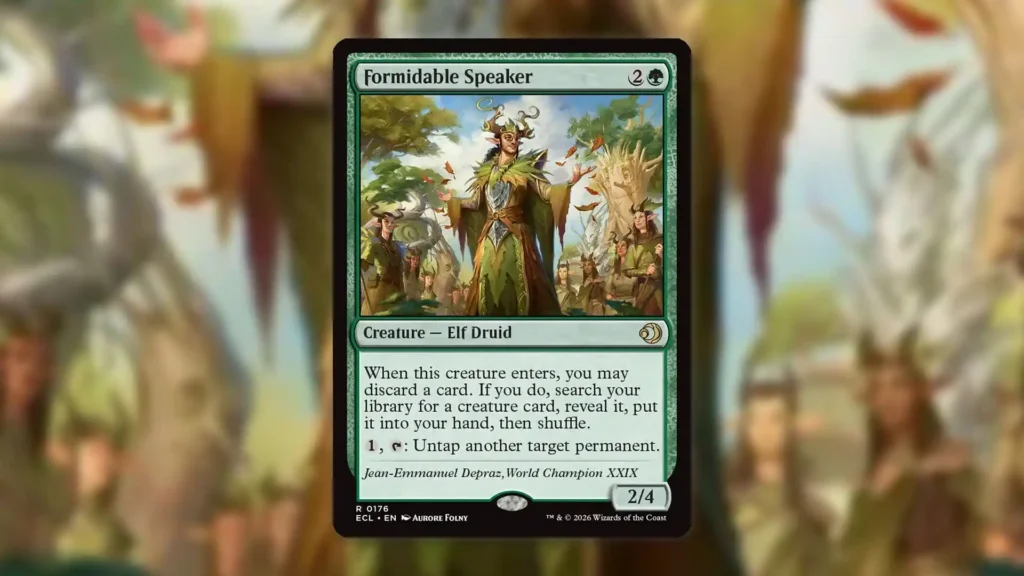 One of the first Lorwyn Eclipsed spoilers revealed, Formidable Speaker has a ton of potential across an array of formats. This is largely due to its versatility as a discard outlet, tutor, and untapper, which together make it an elite support piece with a wide range of applications.