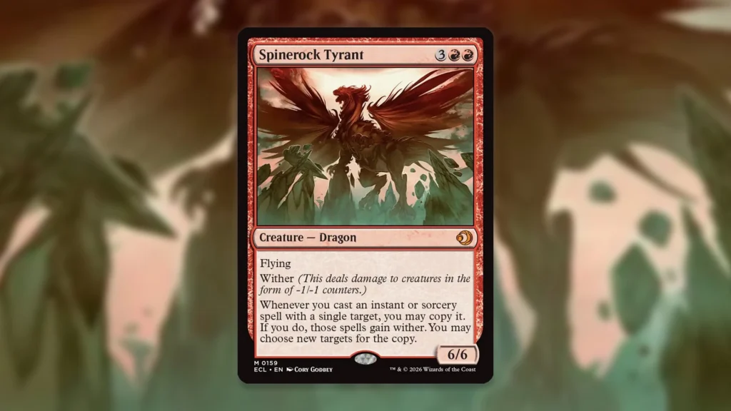 Of all the mythics in Lorwyn Eclipsed, Spinerock Tyrant is definitely one of the flashiest. After all, it’s not every day you see a big Dragon with Wither, and getting to copy burn spells you point at opposing creatures is a nice touch.