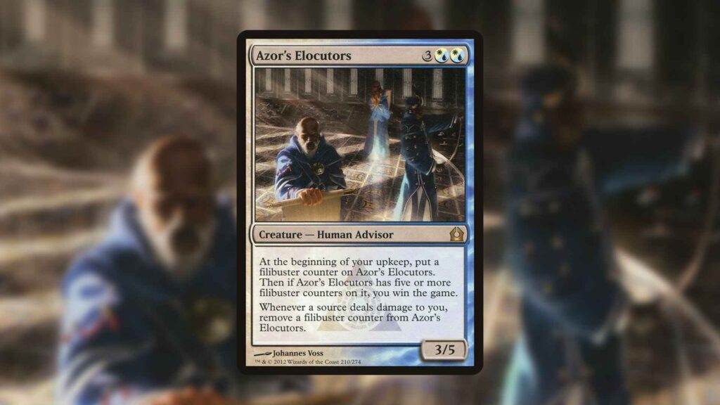Azor’s Elocutors is so innocuous that there’s a decent chance your opponents might just ignore it. While it takes a long time for this creature to win the game on its own, there are a decent number of ways to accelerate Azor’s Elocutors and make it a decent threat.