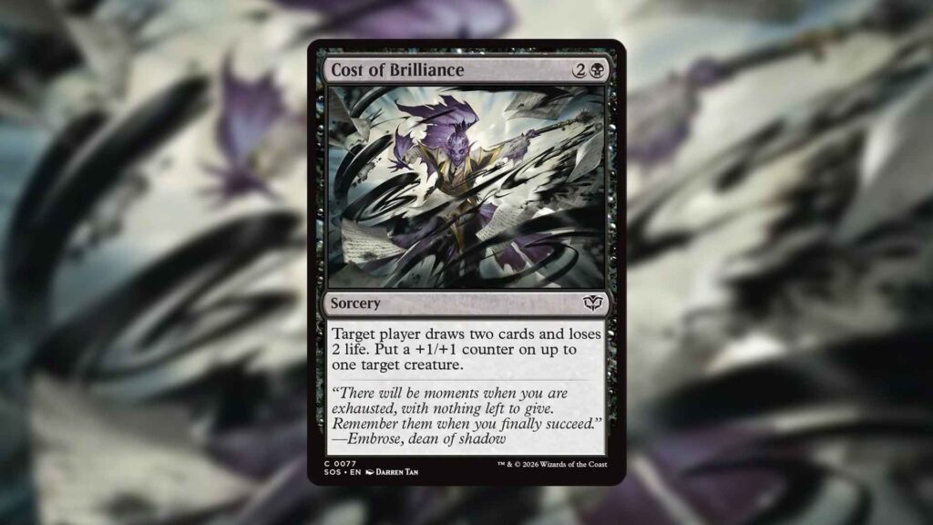 Similarly, cards like Cost of Brilliance are absolute gold mines. Between drawing cards, triggering Repartee, and buffing your board, this common does absolutely everything. It’s reminiscent of Final Fantasy’s extremely strong Combat Tutorial, but the set’s synergies actually care about it this time.